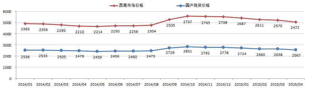 國(guó)內(nèi)氧化鋁現(xiàn)貨交易市場(chǎng)趨于下跌。4月份上期所三月期鋁結(jié)算價(jià)加權(quán)平均值為13238.94元/噸,以17.3%作價(jià)4月份氧化鋁長(zhǎng)單價(jià)為2275.02元/噸。1-4月份國(guó)內(nèi)氧化鋁現(xiàn)貨價(jià)格和西南市場(chǎng)價(jià)格持續(xù)處于下跌趨勢(shì),4月份下跌幅度分別為71元/噸、98元/噸。再加上部分地區(qū)氧化鋁現(xiàn)貨價(jià)格逐步接近長(zhǎng)單比例價(jià),并且氧化鋁企業(yè)利潤(rùn)空間急劇縮水并貼近成本。預(yù)計(jì)氧化鋁市場(chǎng)將會(huì)迅速恢復(fù)理性走勢(shì),價(jià)格也將止跌企穩(wěn)。