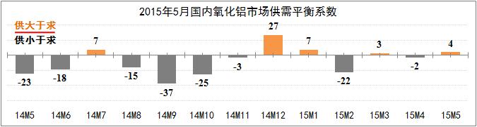 發(fā)稿時間:2015-06-18五月份市場供給基本穩(wěn)定。統(tǒng)計期內(nèi),全國氧化鋁建成產(chǎn)能6600萬噸,開工產(chǎn)能5600萬噸,開工率為85%。5月份,全國氧化鋁產(chǎn)量465萬噸,環(huán)比增幅基本持平。進(jìn)口氧化鋁方面,國產(chǎn)氧化鋁價格的下浮直接拉低了對進(jìn)口氧化鋁的市場需求,上半年進(jìn)口氧化鋁占比為7.1%,低于平均水平2.1個百分點,預(yù)計氧化鋁進(jìn)口量下降的基本趨勢將延續(xù)至第三季度。