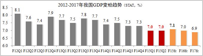 國家統計局最新公布數據,2015年上半年我國GDP同比增速為7%,其中第一季度和第二季度同比增速均為7%,經濟運行趨于穩定。世界銀行在7月上旬公布的《中國經濟簡報》預測,2015年中國經濟增速為7.1%,隨后三年將按0.1個百分點的速度回落。總體而言,未來幾年我國經濟增速將呈現逐步放緩的趨勢,其主要原因取決于結構性改革進程。