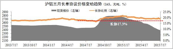 滬鋁三月長協(xié)比例繼續(xù)回落。監(jiān)控?cái)?shù)據(jù)顯示,滬鋁三月長協(xié)比例繼續(xù)保持回落趨勢,且與氧化鋁現(xiàn)貨報(bào)價(jià)之間的差距進(jìn)一步拉大。截至7月17日,滬鋁三月長協(xié)比例逐步回落至19.1%,同比下降0.2個(gè)百分點(diǎn),月化波動區(qū)間為19.1%-19.8%。從下滑區(qū)間幅度上看,滬鋁三月結(jié)算價(jià)月均下滑0.08%,氧化鋁報(bào)價(jià)下滑0.14%,在長協(xié)比例相對穩(wěn)定的前提下,預(yù)計(jì)氧化鋁價(jià)格將逐步趨穩(wěn)。