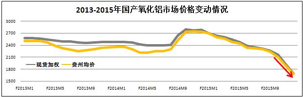 國(guó)內(nèi)價(jià)格情況。統(tǒng)計(jì)期內(nèi),全國(guó)氧化鋁市場(chǎng)價(jià)格繼續(xù)保持了今年以來(lái)的下行趨勢(shì),且下行幅度有所擴(kuò)大。其中:12月國(guó)產(chǎn)現(xiàn)貨加權(quán)價(jià)為1694元/噸,環(huán)比下降11.7%,降幅環(huán)比擴(kuò)大了3.4個(gè)百分點(diǎn);貴州均價(jià)為1680元/噸,環(huán)比下降10.8%,降幅環(huán)比擴(kuò)大了3.4個(gè)百分點(diǎn)。研究認(rèn)為,目前氧化鋁市場(chǎng)價(jià)格直線下浮屬于異常現(xiàn)象,主要原因是電解鋁做空力量加劇了市場(chǎng)悲觀預(yù)期。