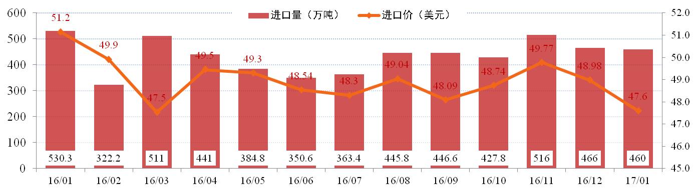 進(jìn)口量方面:根據(jù)進(jìn)口海關(guān)數(shù)據(jù)顯示,2017年1月我國進(jìn)口鋁土礦460萬噸,同比下降11.74%,環(huán)比微降1.39%。當(dāng)月澳洲、幾內(nèi)亞、馬來西亞等主要國家供應(yīng)基本穩(wěn)定。