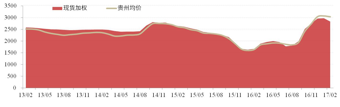 全國現(xiàn)貨價(jià)格方面,2月份成為氧化鋁價(jià)格走勢的分水嶺,氧化鋁市場價(jià)格出現(xiàn)小幅下降但主要氧化鋁企業(yè)控制力仍在,價(jià)格相對可控。全國氧化鋁現(xiàn)貨加權(quán)價(jià)為2,928元/噸,環(huán)比下降1.38%。貴州氧化鋁現(xiàn)貨加權(quán)價(jià)為3,030元/噸,環(huán)比下降1.17%。貴州地區(qū)現(xiàn)貨加權(quán)價(jià)格相對高于全國其他地區(qū)。