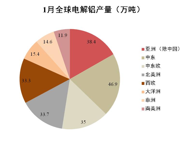 數(shù)據(jù)顯示,1月全球(除中國)原鋁產(chǎn)量環(huán)比微增0.1%至229.2萬噸。當(dāng)月日產(chǎn)量由12月的7.383萬噸增至7.393萬噸。預(yù)計(jì)2月份全球產(chǎn)量因生產(chǎn)天數(shù)減少出現(xiàn)下滑,但受印度新增產(chǎn)能和大洋洲復(fù)產(chǎn)的拉動(dòng),日產(chǎn)量將繼續(xù)增長。