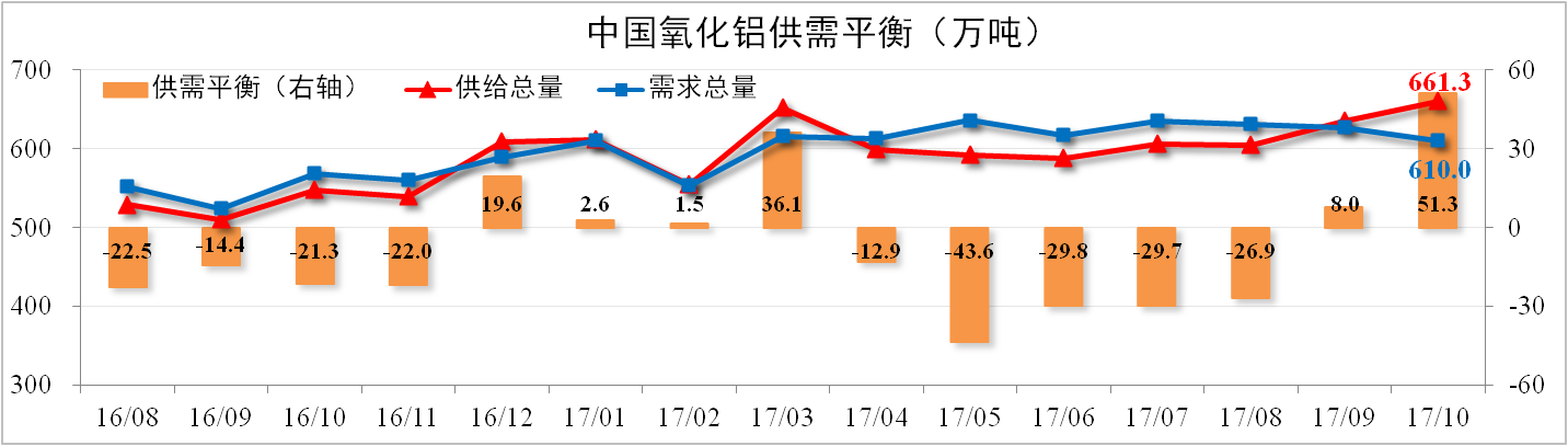 分析認為: 電解鋁違規產能已經基本減產完畢,而氧化鋁市場受高利潤刺激仍保持高產、穩產以及超產,導致氧化鋁供需出現過剩。預計11月份采暖限產對氧化鋁和電解鋁產能影響程度相當,氧化鋁供應過剩局面將維持不變。