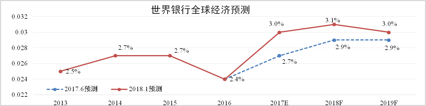 2018年1月9日世界銀行發(fā)布《2018年全球經(jīng)濟(jì)展望》報(bào)告,預(yù)測(cè)隨著投資、制造業(yè)和貿(mào)易的持續(xù)復(fù)蘇,2018年全球經(jīng)濟(jì)將加快至3.1%。但在勞動(dòng)力和資本得到充分應(yīng)用及各國(guó)央行逐步取消寬松貨幣的情況下,潛在增長(zhǎng)將會(huì)放緩,2019年經(jīng)濟(jì)增速將回落至3.0%。