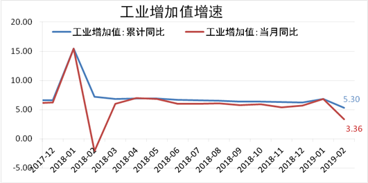 國家統計局數據顯示,2019年1-2月規模以上工業增加值累計同比增長5.3%,延續了2018年生產增速回落的態勢,主要受春節期間生產淡季影響,上下游各行業產能未能完全釋放。二季度內需仍然偏弱,但基建發力或許會對沖內需不足的影響,預計2季度工業增加值將有所反彈。