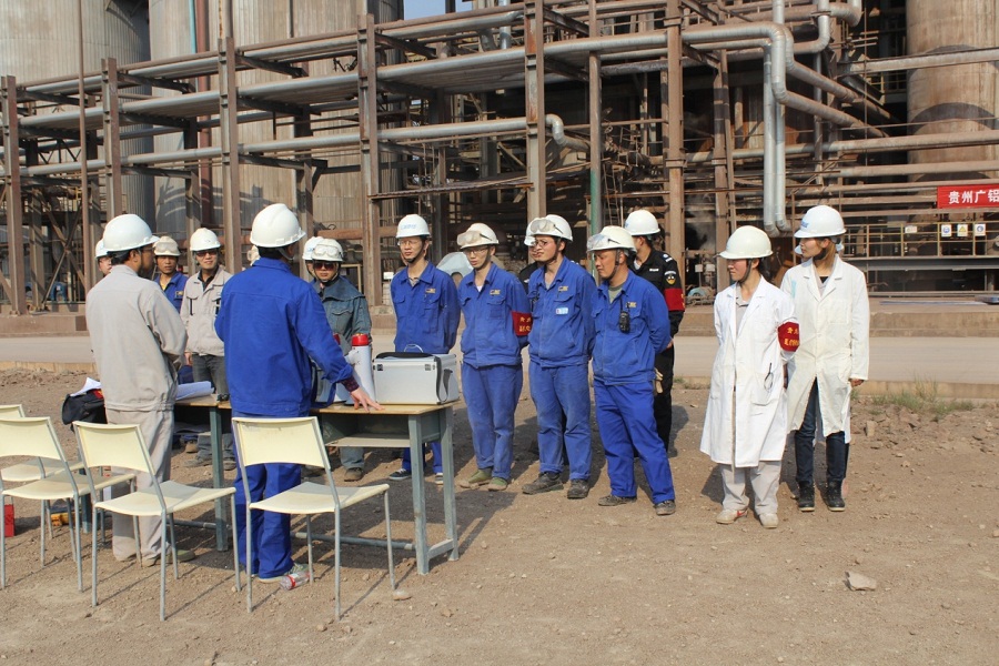 貴州廣鋁溶出車間閃蒸過料管穿孔噴料應急演練
