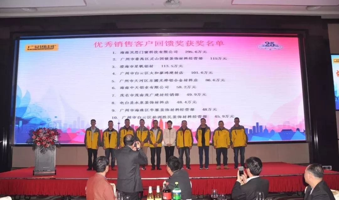 廣鋁股份鋁系統事業部執行總經理董小雷女士、高級顧問邱國華先生、鋁資源事業部執行總經理王新宇先生、營銷總經理李鋇先生、財稅部總監梁東濤先生、生產總工程師康宇苑先生、技術開發總工程師劉煌萍先生、氧化鋁生產總經理董保才先生、財務總經理雷建修先生、安環設備總經理張紅生先生、生產管理中心總監莫傳旭先生、集團董事們和各地經銷商朋友們歡聚一堂,暢想新的一年美好的未來,共商“廣鋁”發展大計。