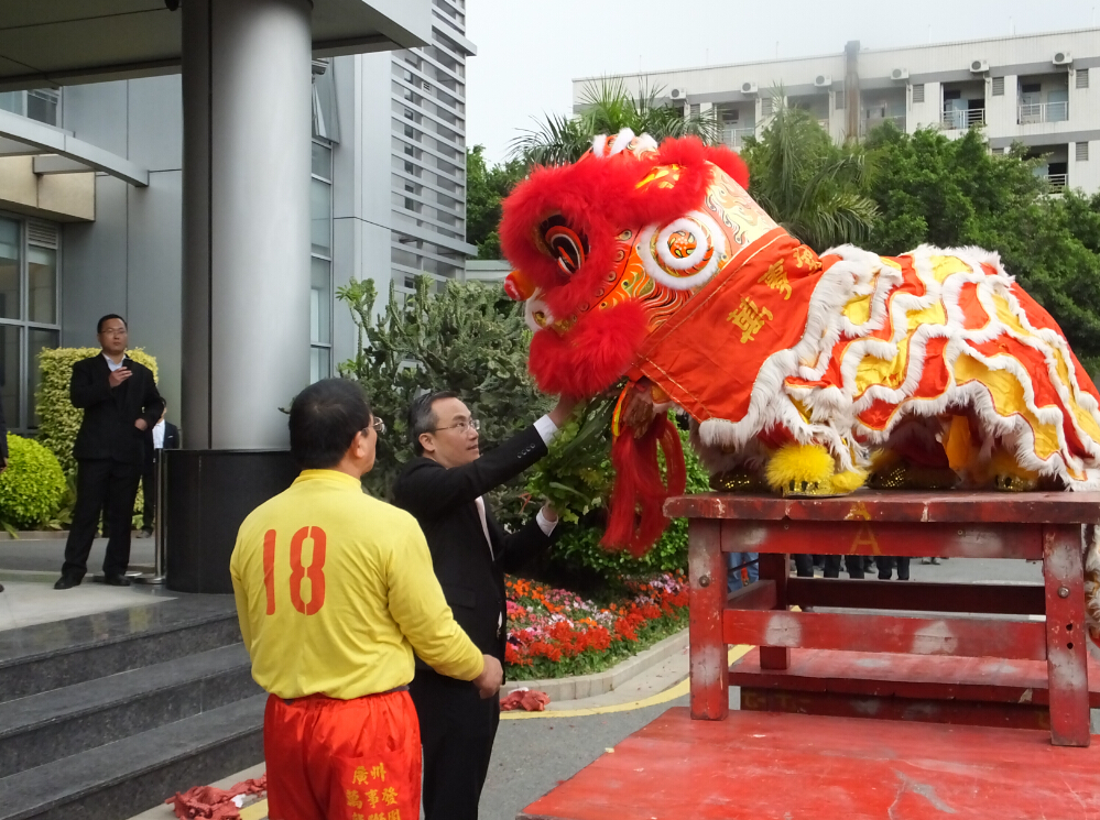上午9∶30時,在一片熱鬧、喜慶的氣氛中,集團公司新春開工慶典隆重拉開帷幕。響徹云霄的炮竹聲、鑼鼓聲、歡笑聲和祝賀聲一步一步將慶典儀式推向高潮。鑼鼓鞭炮聲聲響,雄師共舞賀新春。醒獅儀式中,葉鵬智董事長、吳秋顏董事和夏文鋒總裁滿懷虔誠地進行了點睛儀式。在一片喜慶中,集團公司領導班子帶領全體員工參與了上香儀式,共同祈禱2014年風調雨順,蒸蒸日上。雄獅共舞再次把現場的氣氛推向了高潮,集團辦公大樓和江高生產基地處處歡騰起舞,共賀新春!